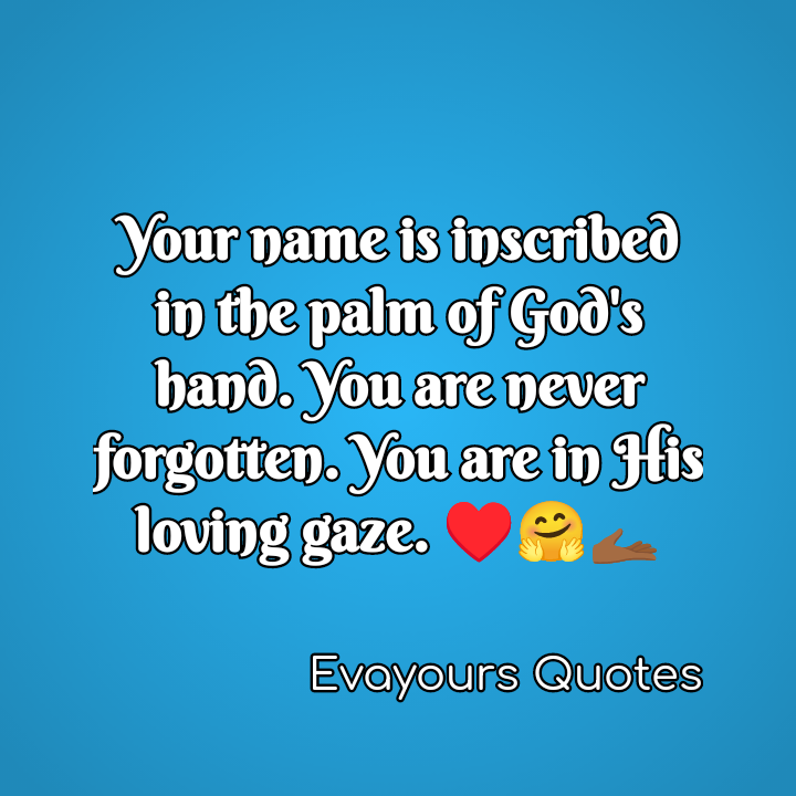 “Can a woman forget her nursing child and not show mercy to the son from her womb? Even if these women could forget, I will never forget you. Look, I have inscribed you on the palms of my hands. Your walls are never out of my sight.” ‭‭Isaiah‬ ‭49‬:‭15‬-‭16‬ ‭EHV‬‬
