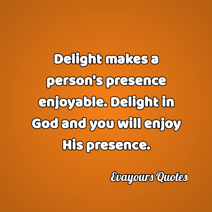 1 Delighting in someone involves actively finding joy in a presence, (do you find joy in the presence of God e.g. while reading your Bible or in fellowship or prayer?)