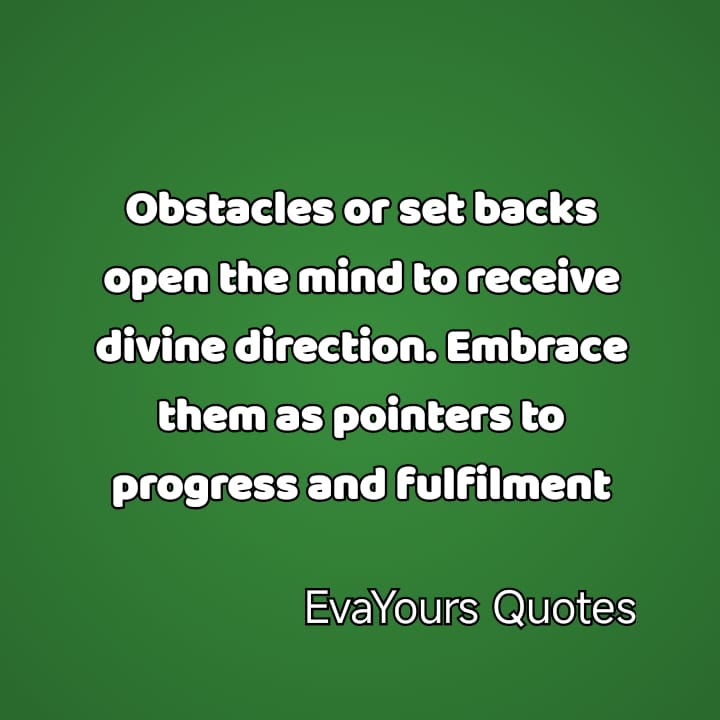 How can we deal with obstacles on our way? This question presumes you know where you are going. To deal with obstacles, you have to believe that All things work together for good for those who love God. This is the principle or law that every movement follows. Once you can consider an obstacle to work for your good, then you are prepared to God’s leading around the obstacle so that you will fulfil your purpose. If you allow an obstacle to stop your progress, then frustration with its attendant conditions will drown you. Are you in any adverse condition now? Is it stopping you from moving forward? See it differently from today and open your mind to the Lord to drop the way forward in your mind. This is the time to start practising how to listen to God for direction because time is moving towards when only those who can listen to God will live.